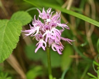 A number of the bee orchids have their peak flowering time in April, with the intriguing little bumble bee orchid appearing in damp grassland and the delicate woodcock orchid (Ophry scolpax) along the edge of forest tracks.