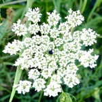 In early sumer the flowers Daucus carota of appear as a white foam in the green fields and verges and the flowers persist into late august, reappearing after the first autumn rain. The tiny flowers are arranged in creamy white umbels with often a central flower of pink or black, it is thought that this has the appearance of an insect and attracts other insects to the flower head, encouraging pollination. Each umbel is surrounded by a collar of divided bracts. The leaves are typical carrot-like, divided and sub-divided into narrow segments. As the flowers mature they fold inwards to form unusual basket like structures which protect the developing seeds, this gives rise to the alternative English name ; the bird’s nest plant.