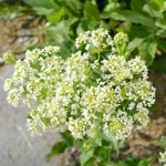 The frothy white flowers are arranged in loose umbels but they belong to the Cruciferae family; each, tiny flower has the four petals forming a cross, from which the family name is derived. The flowers have 6 prominent stamens.