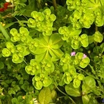 One of a number of Euphorbias native to Greece, Euphorbia helioscopia grows on waste ground, road verges and even the upper reaches of some beaches. The translucent yellow plants seem to catch the sunlight, giving it the species name helioscolia. The flower arrangement is typical of the euphorbias, with a small female flower surrounded by tiny male flowers, which in turn is surrounded by yellow bracts; the whole appearing like a single flower, a pseudantheum, known as a cyatheum. The female flower develops into a capsule, which, when ripe explodes scattering the seeds. The seeds are further spread by ants, who carry them back to their nests.