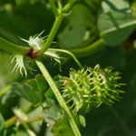 Just one of the 15 species of medic present on Skopelos, Medicago polymorpha is found on road verges, fields, olive groves and the upper reaches of sandy beaches. Like all the medics, it has small yellow pea flowers and is most easily recognised by its intriguing fruits, which are spirals with distinct teeth.
