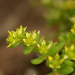 Coastal sedum (Sedum litoreum) often grows along the dry road edges close to the sea, where salt and sand have been blown in from the coast, rather than on the beaches themselves, as its name suggests. It is a succulent annual with yellow flowers, often found alongside Sedum rubrum. The plants are well suited to the Mediterranean climate, they take up water during the cool wet winters, store it in all parts of the plant allowing it to tolerate the hot dry summer, even in the most arid situations.